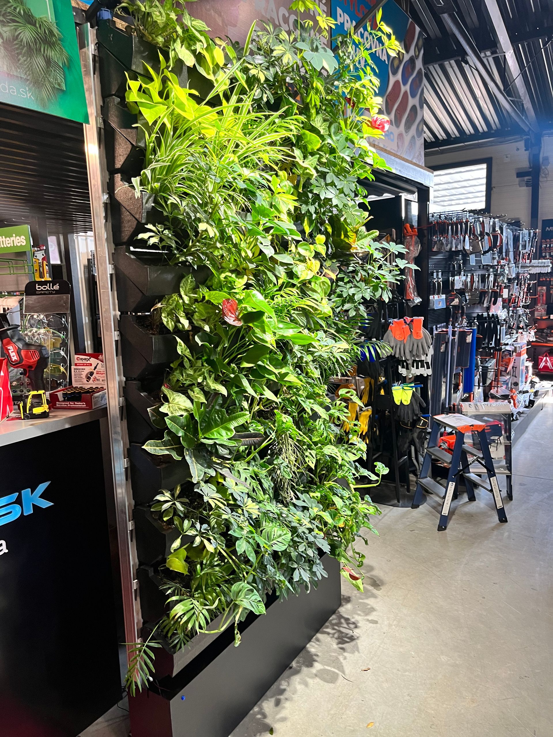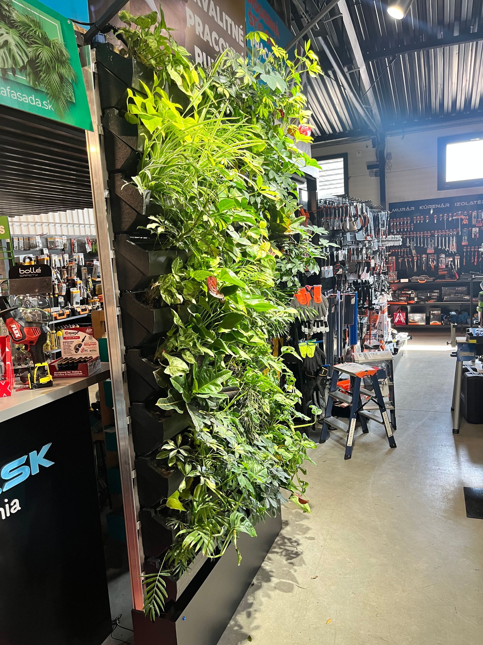 Kompletná realizácia zelenej steny v showroome s náradím.