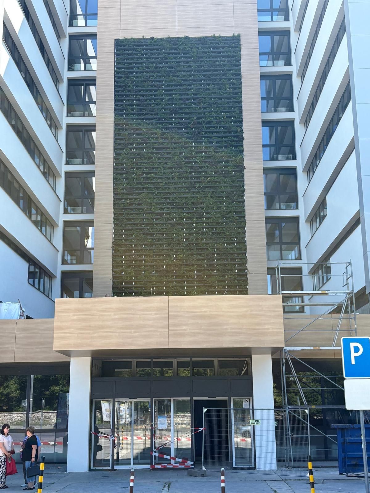 Kompletná realizácia zelenej fasády na budove nemocnice v Leviciach